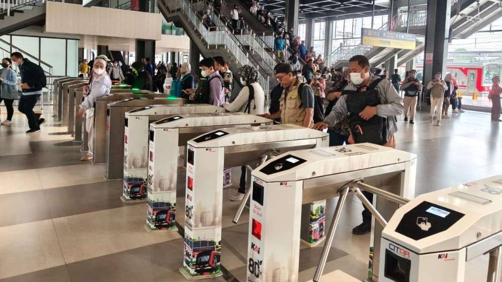 Sejumlah penumpang melewati gerbang tiket di Stasiun Tanah Abang - Foto: KAI