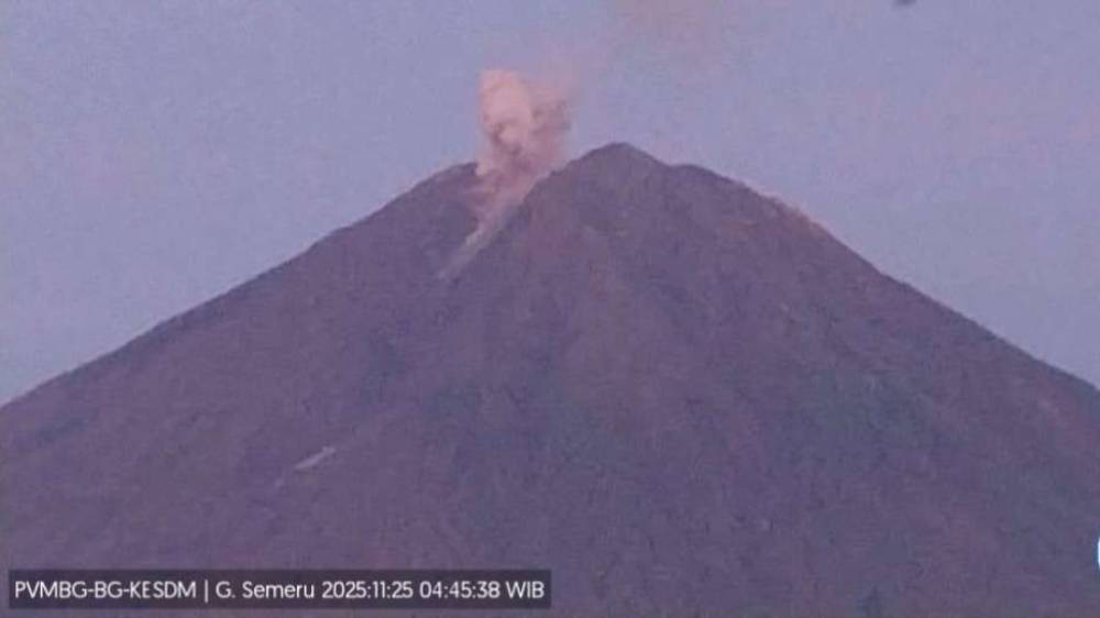 INVESTORBISNIS.COM – Gunung Semeru kembali menunjukkan aktivitas vulkanik signifikan pada Selasa (25/11/2025) pukul 04.45 WIB. Laporan resmi PVMBG yang disampaikan Petugas Pos Pengamatan Gunungapi Semeru di Gunung Sawur, Mudkas Sofian, mencatat erupsi disertai kolom abu setinggi sekitar 800 meter di atas puncak, atau kurang lebih 4.476 meter di atas permukaan laut. Kolom abu tampak berwarna putih hingga kelabu dengan intensitas sedang dan bergerak ke arah utara.