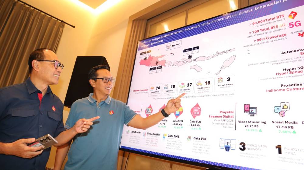 “Ada jutaan pelanggan Telkomsel yang melakukan perjalanan. Selain komunikasi, mereka juga mengakses berbagai layanan digital. Paling tinggi kami prediksi berasal dari online game. Biasanya anak-anak di mobil atau kereta bermain gim, sehingga itu yang kami antisipasi dengan penambahan kapasitas jaringan,” ujarnya dalam media update kesiapan RAFI 2026 Area Jawa Bali di Surabaya, Rabu malam (11/3).