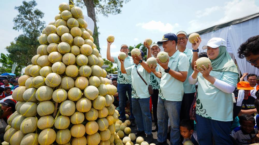 Dalam rangkaian kegiatan tersebut, turut digelar panen raya melon hasil demonstration plot, penandatanganan mural sebagai simbol komitmen pengembangan budidaya melon berdaya saing, pawai tumpeng melon, serta wiwarah dengan membagikan 540 kilogram melon kepada masyarakat.